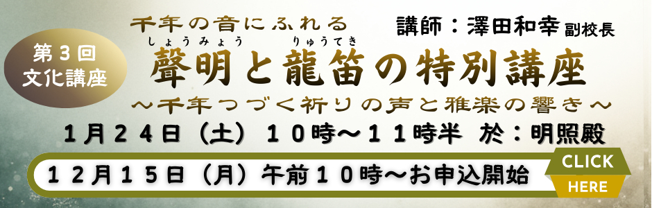 第3回文化講座 『聲明(しょうみょう)と龍笛(りゅうてき)の特別講座』を開催いたします。